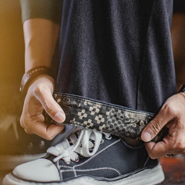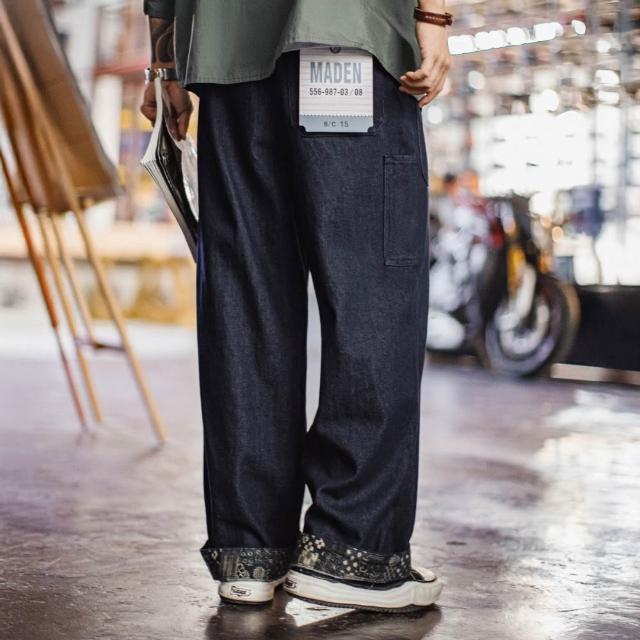 馬登工裝美式古布水洗牛仔褲直筒BORO闊腿深藍色寬鬆休閒褲子男春