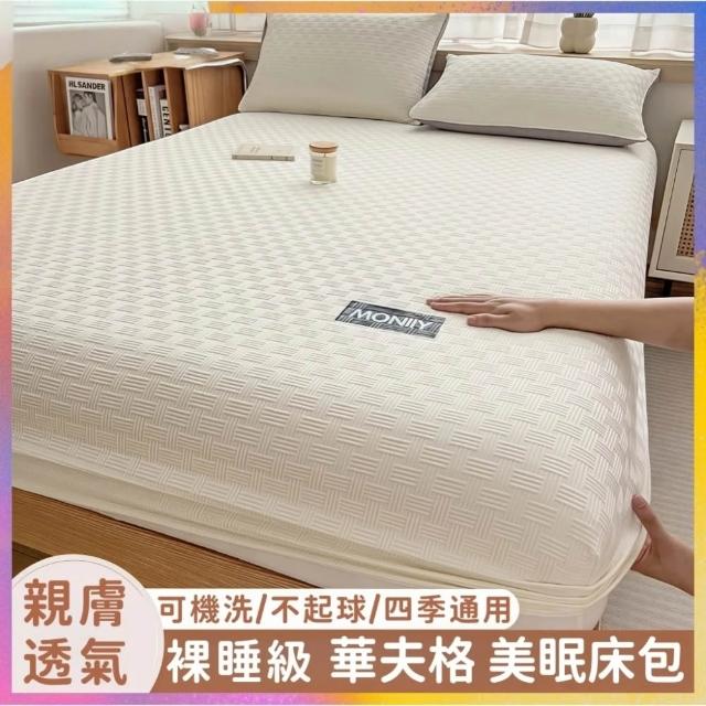 適合裸睡 華夫格美眠床包 素色床包 加高35公分/單人/雙人/加大/特大/床單/床包組/二件組/三件組 床包