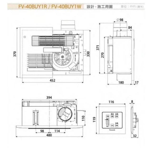 Panasonic 國際牌國際牌 Panasonic浴室暖風機 乾燥機 線控型 110V/220V FV-40BUY1R/FV-40BUY1W