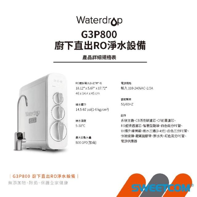 EVERPURE 愛惠浦WATERdrop G3P800 廚下直出RO800加侖淨水UV高溫殺菌 含基本安裝