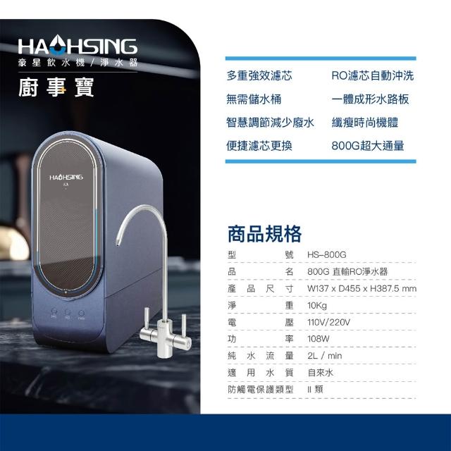 豪星 廚事寶系列 HS-800G 廚下直輸RO淨水器 淨水 純水 雙出水 逆滲透 直出機 無桶機