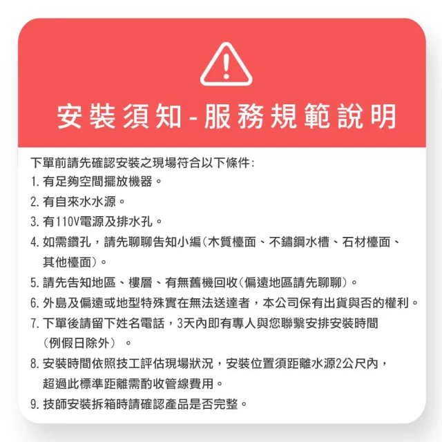 - 針對大型商品(包括:大型家電、家具床墊、健身按摩器材、車類...等),商店將於完成收款確認後,一天內〈不含例假日〉將會有專人與您確認相關配送細節等的聯繫。偏遠地區、樓層費及其它加價費用,皆由商店於約定配送時一併告知,商店將保留出貨與否的權利。