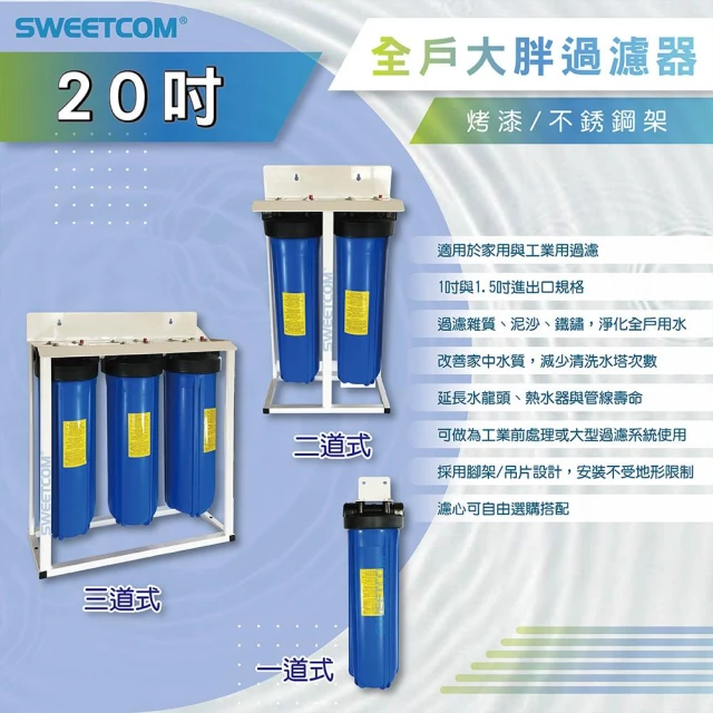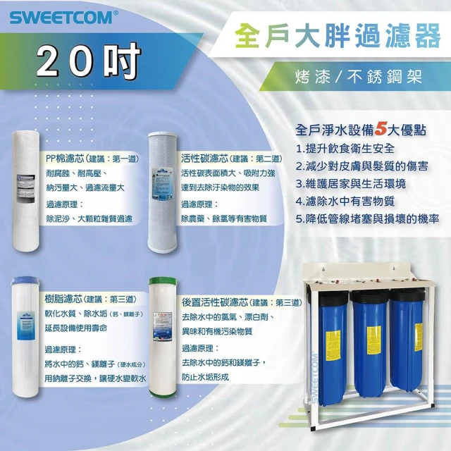 20吋 大胖 單道 二道 三道式全戶過濾器(烤漆腳架型) PP 活性碳 樹脂 水塔過濾