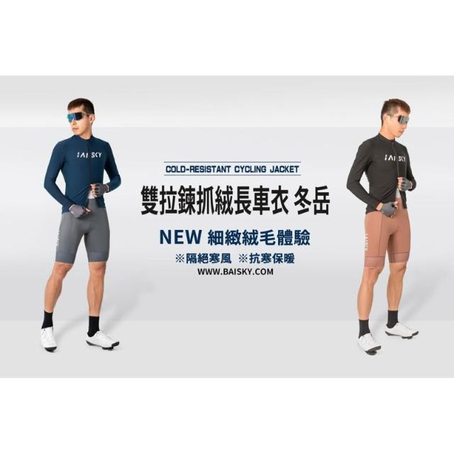 BAISKYBAISKY百士奇自行車男款雙拉鍊抓絨長車衣 冬岳 黑