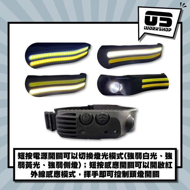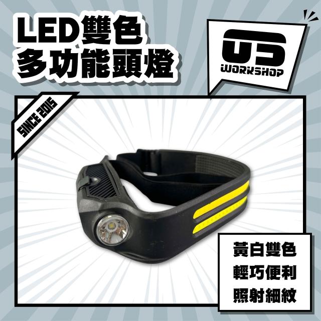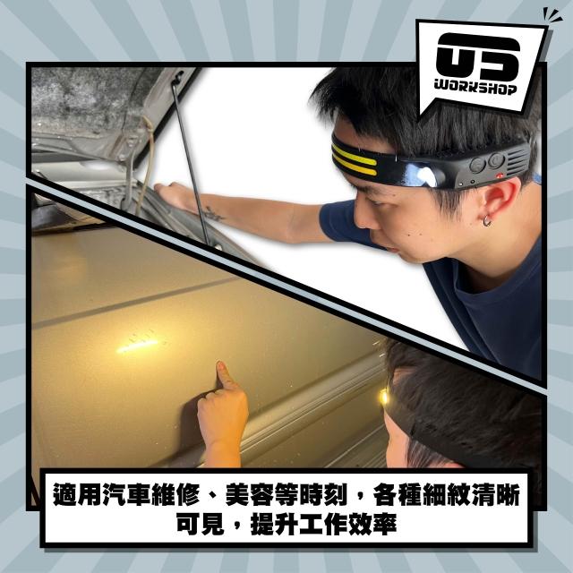 ED雙色多功能頭燈 智能感應 工作燈 黃白LED 捕紋 汽車美容 汽車維修 漆面拋光 太陽紋 刮傷 可調【零伍工坊