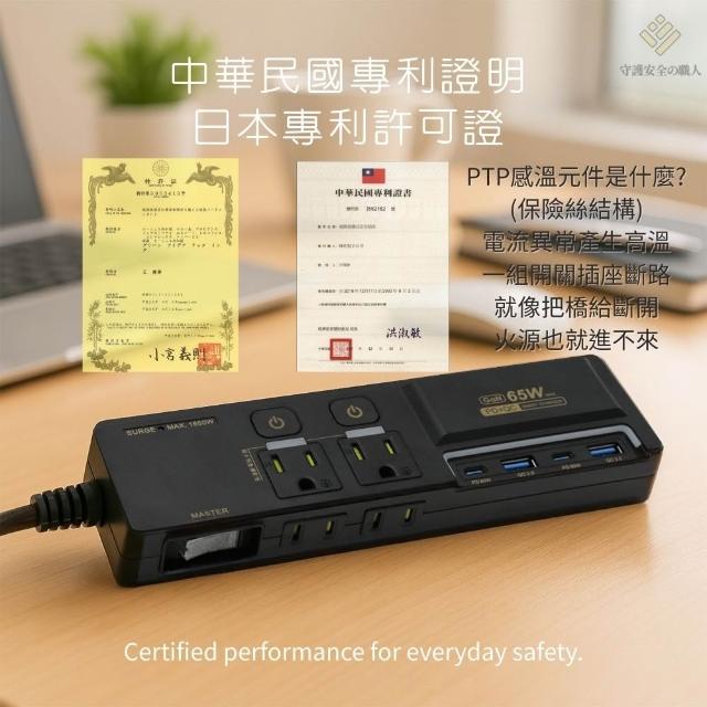 Palladium感溫裝置延長線 避免火災 專利設計 保險絲熔斷技術 65W 35W 25W 過載開關 保護蓋 防雷突波