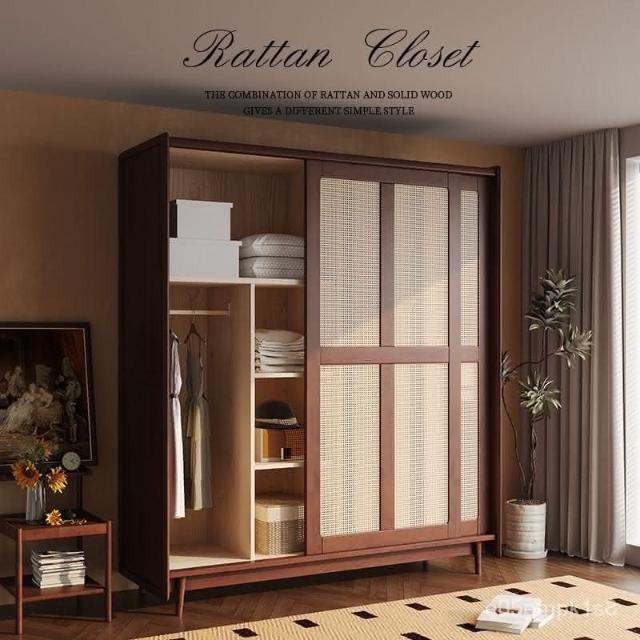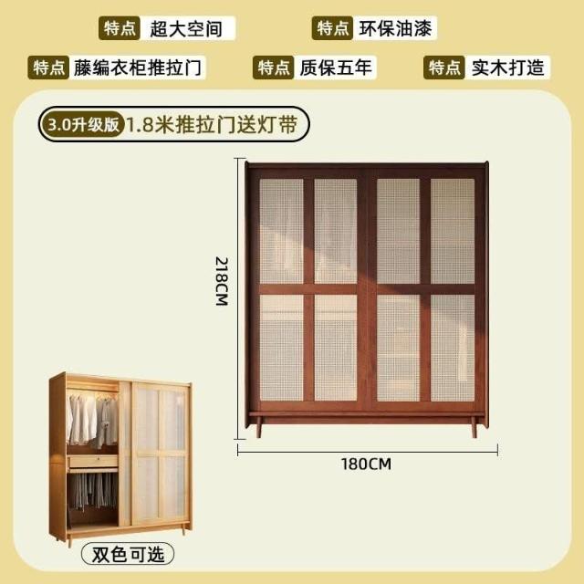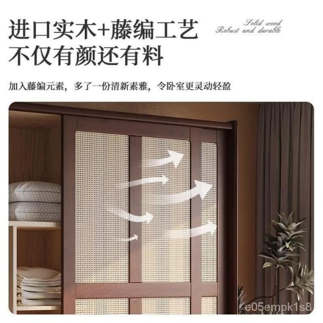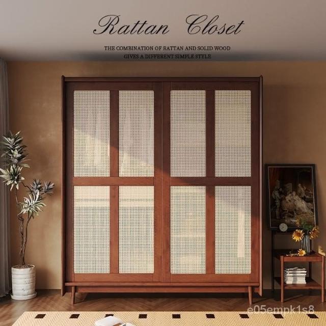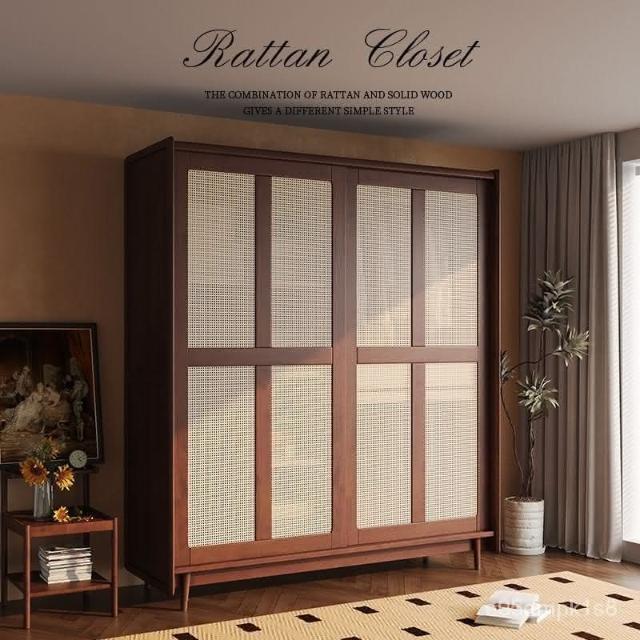 複古實木藤編推拉門衣櫃主臥儲物櫃小戶型傢用臥室衣櫃民宿衣櫃