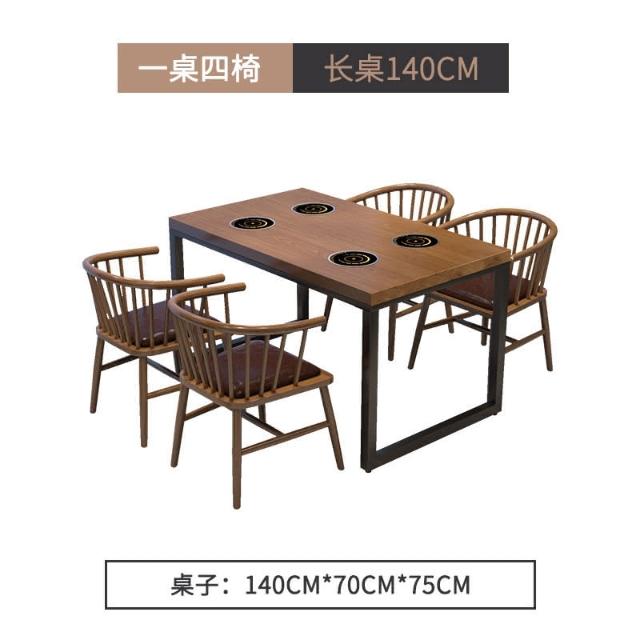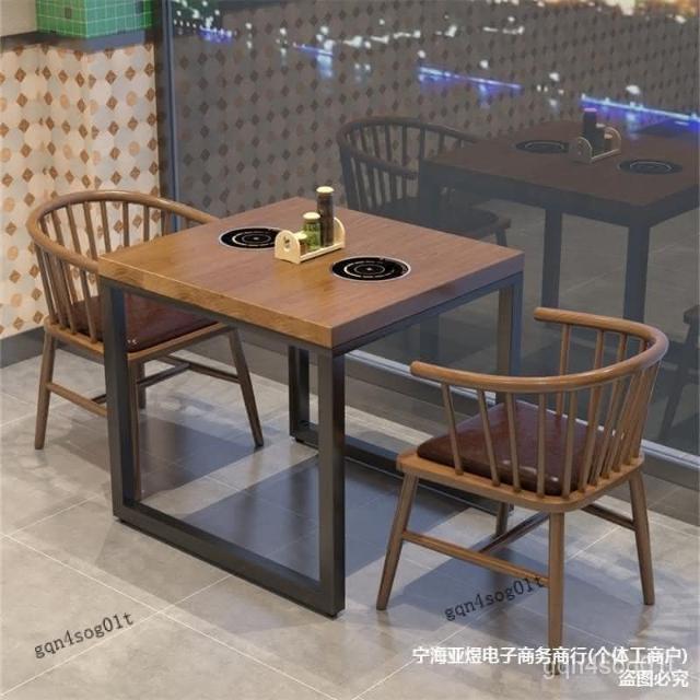 工業風實木餐桌一人一鍋火鍋桌子電磁爐一體主題飯廳飯店桌椅組閤 開發票