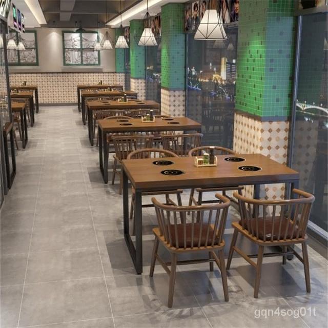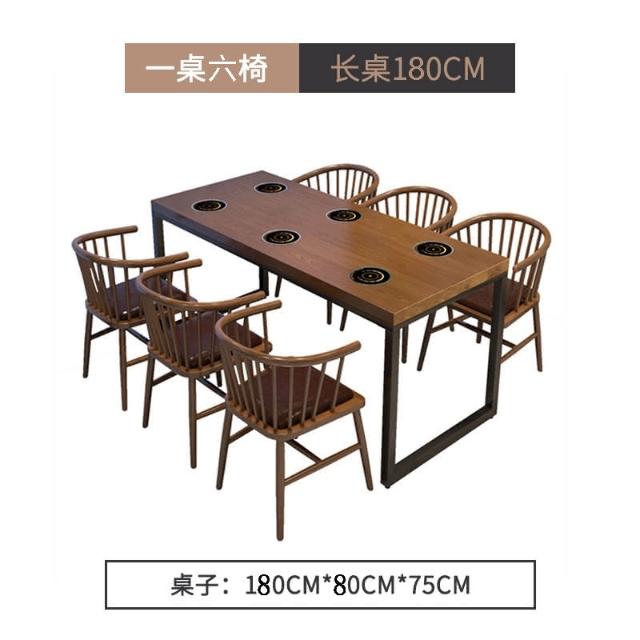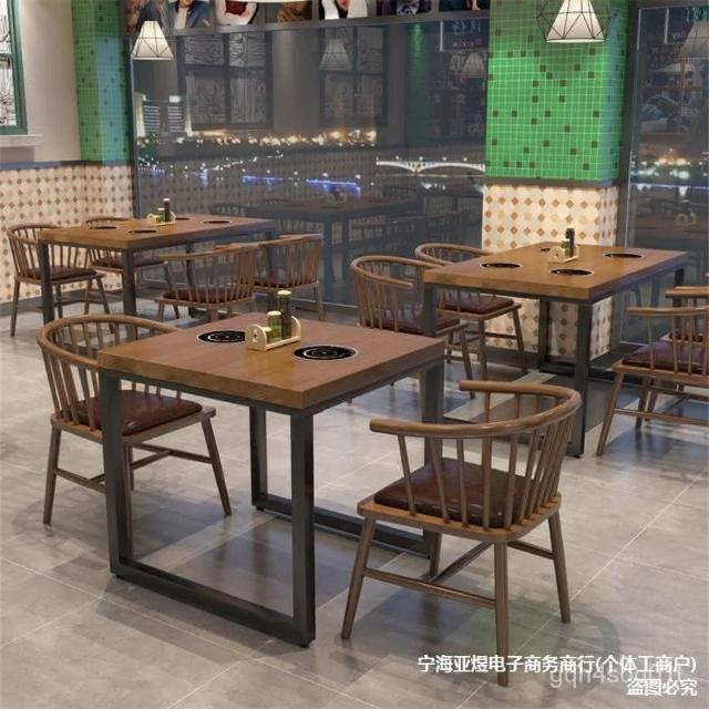 工業風實木餐桌一人一鍋火鍋桌子電磁爐一體主題飯廳飯店桌椅組閤 開發票
