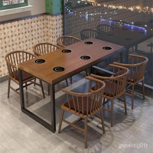 工業風實木餐桌一人一鍋火鍋桌子電磁爐一體主題飯廳飯店桌椅組閤 開發票
