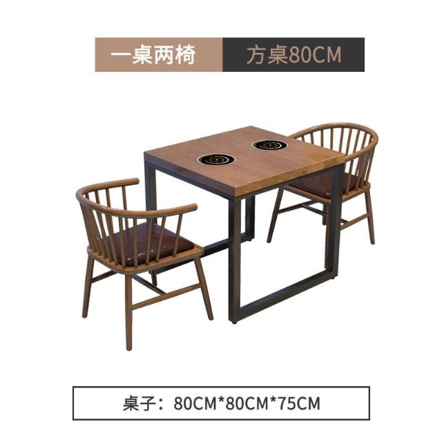 工業風實木餐桌一人一鍋火鍋桌子電磁爐一體主題飯廳飯店桌椅組閤 開發票