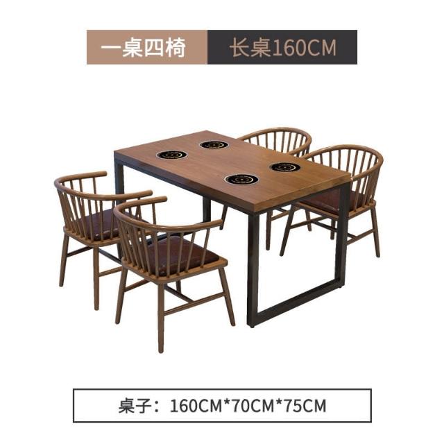 工業風實木餐桌一人一鍋火鍋桌子電磁爐一體主題飯廳飯店桌椅組閤 開發票