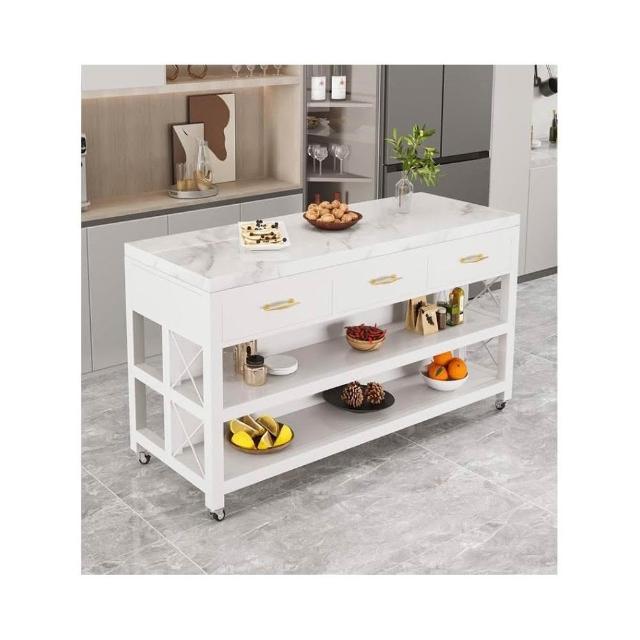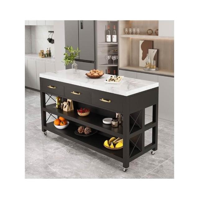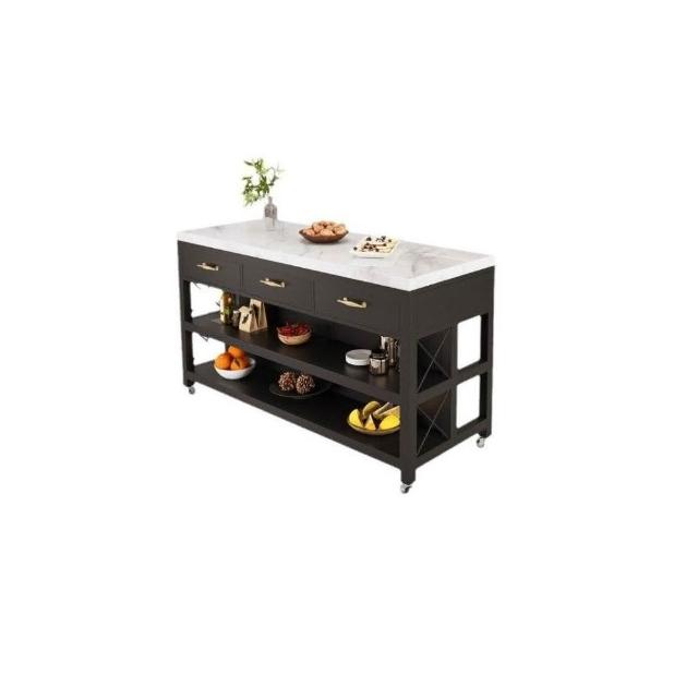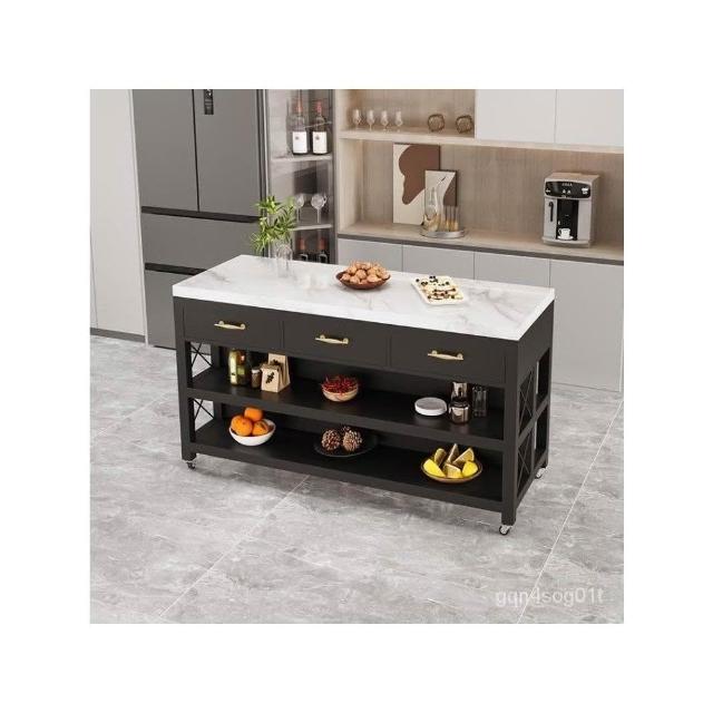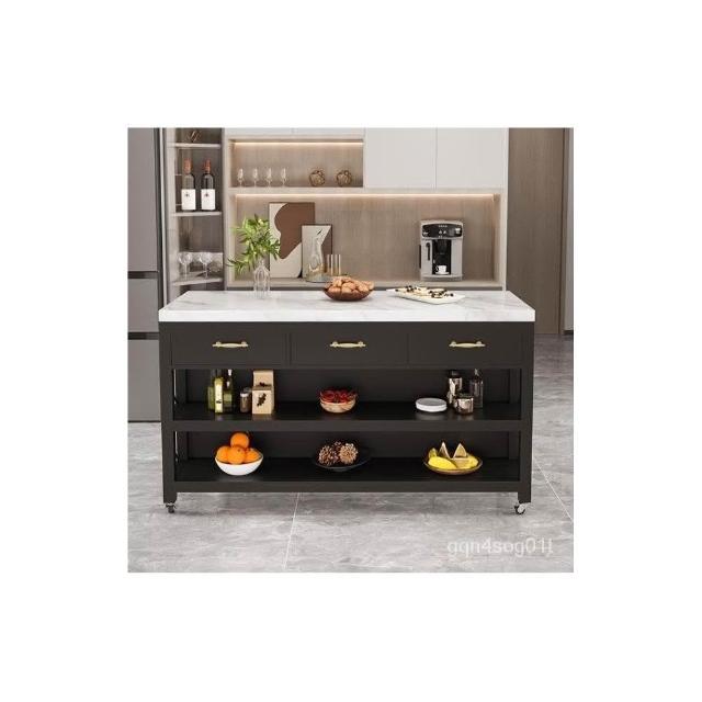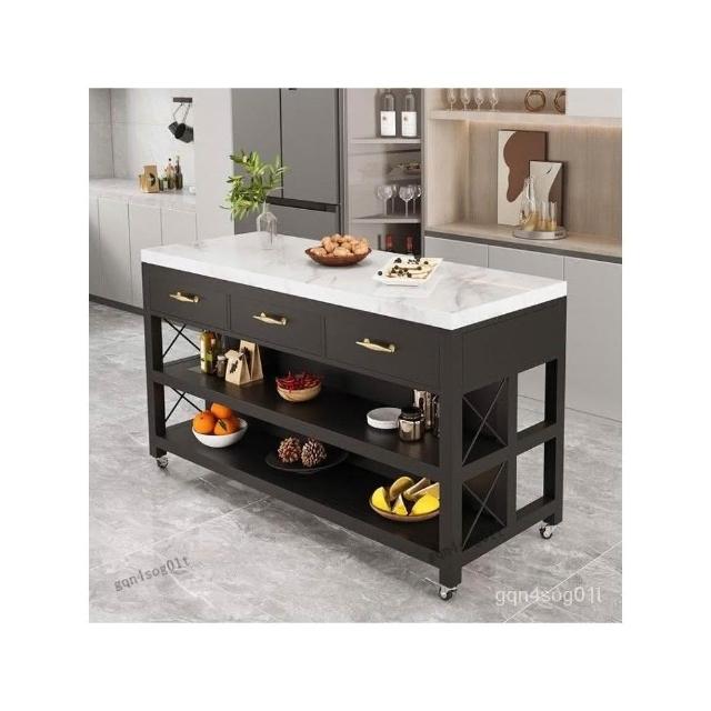 大理石中島臺 開放式廚房餐桌子 可移動工作臺料理臺 收納儲物餐邊櫃