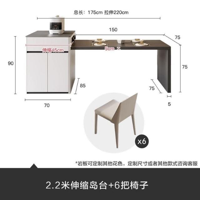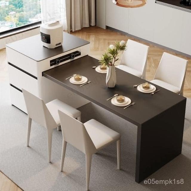 現代簡約極簡島臺餐桌可伸縮一體 輕奢巖闆廚房中島臺 傢用小戶型餐桌椅 吃飯桌 飯桌 岩板桌