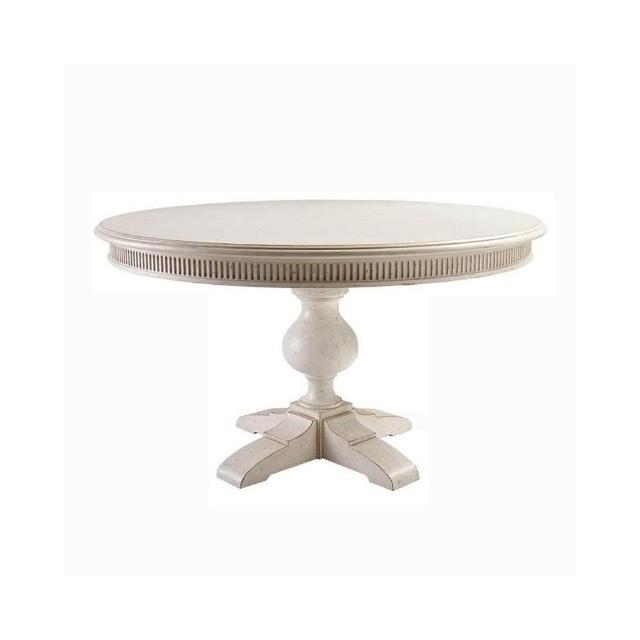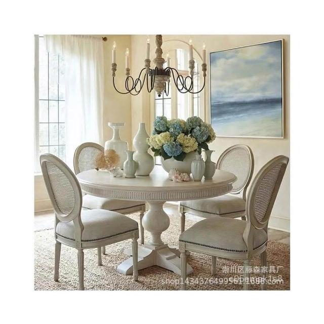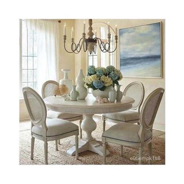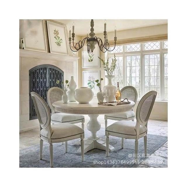 實木圓餐桌椅組閤 法式白色複古別墅傢具圓形餐桌