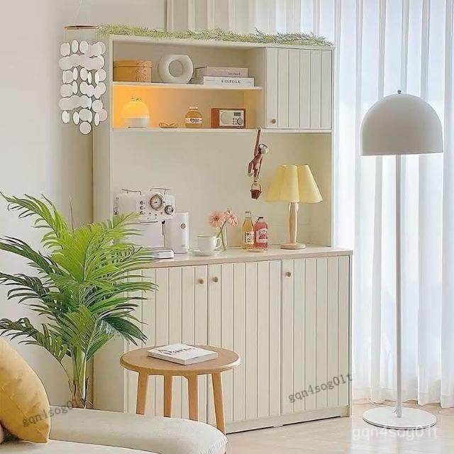 La奶油風現代極簡餐邊櫃一體靠墻現代簡約餐廳廚房儲物櫃多功能 廠傢直銷
