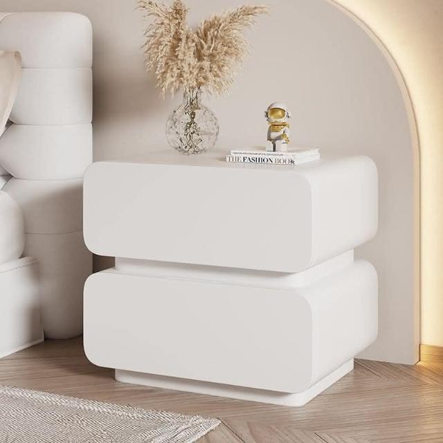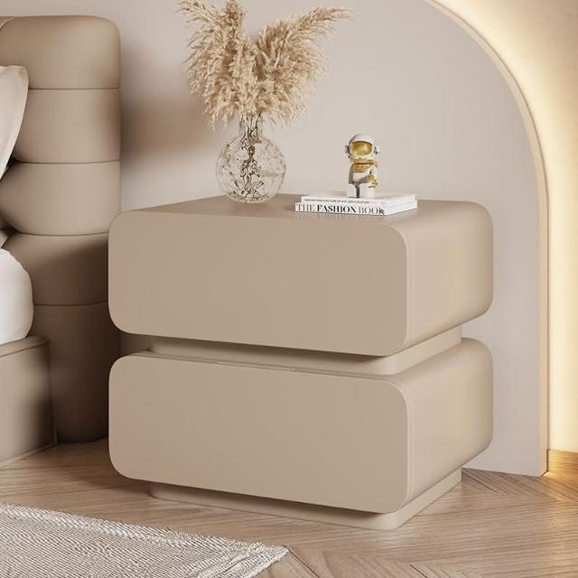 洞窩米思洛奶油風實木床頭柜意式極簡臥室收納櫃整裝落地床邊柜子 破損補寄