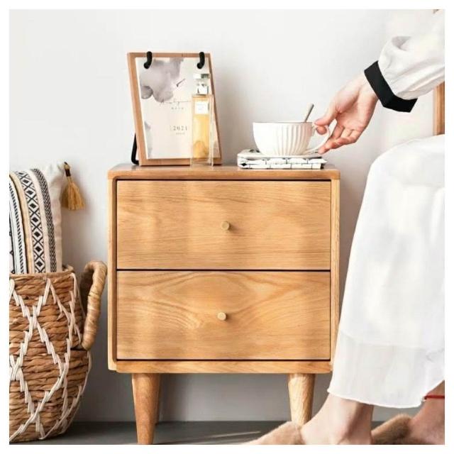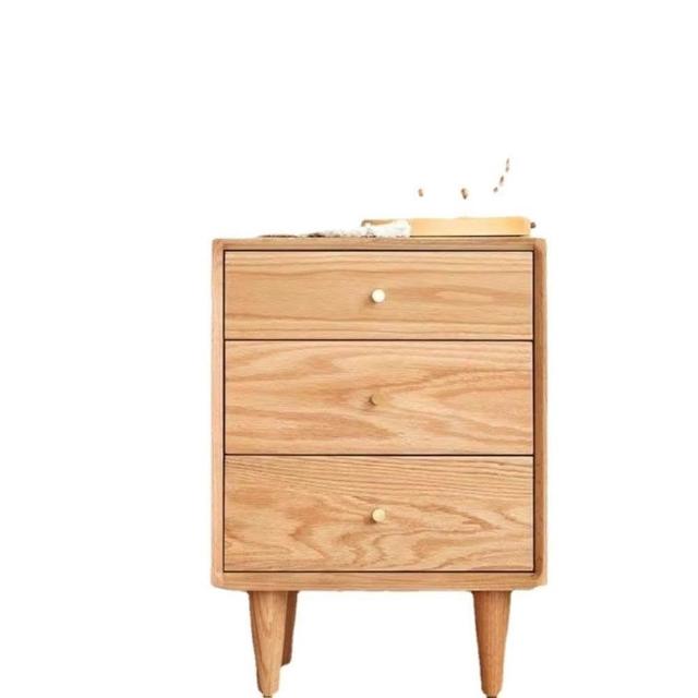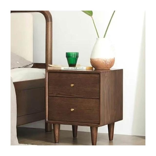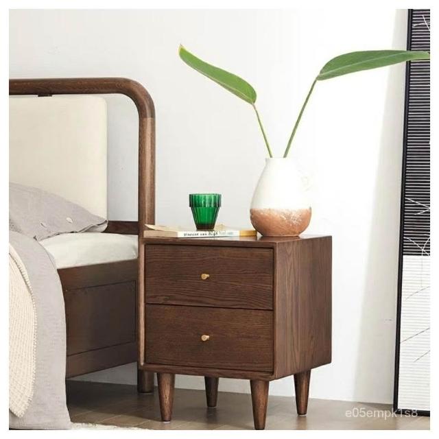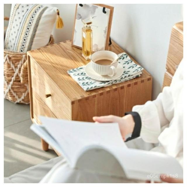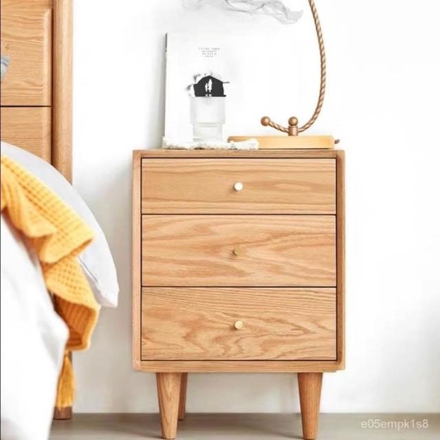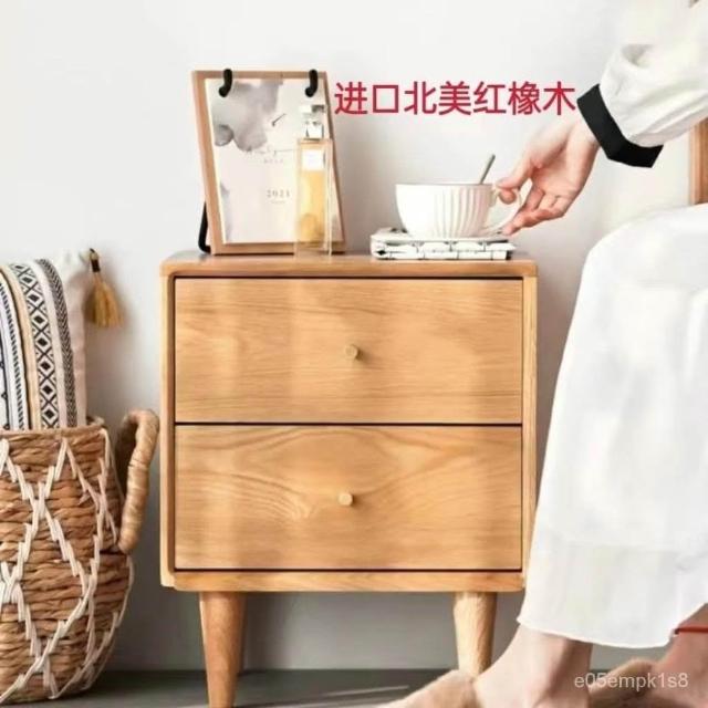 北歐現代簡約純實木床頭櫃橡木原木色黑衚桃色床邊櫃臥室儲物櫃