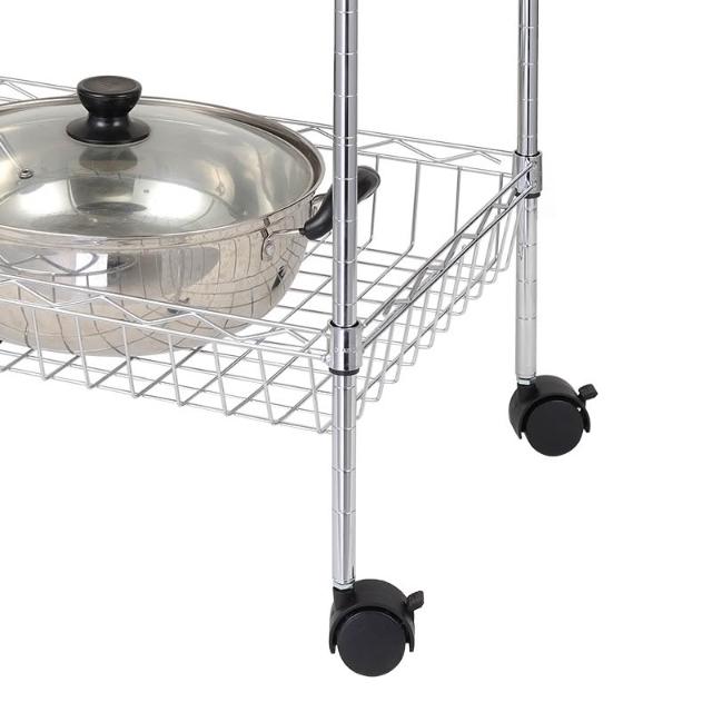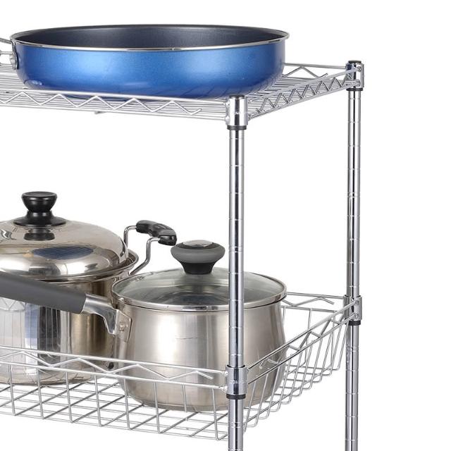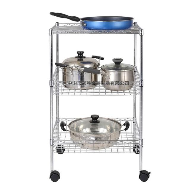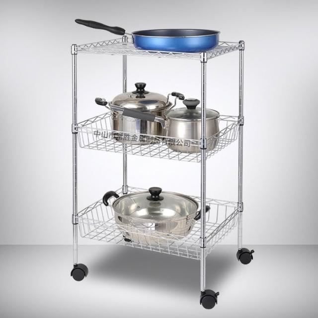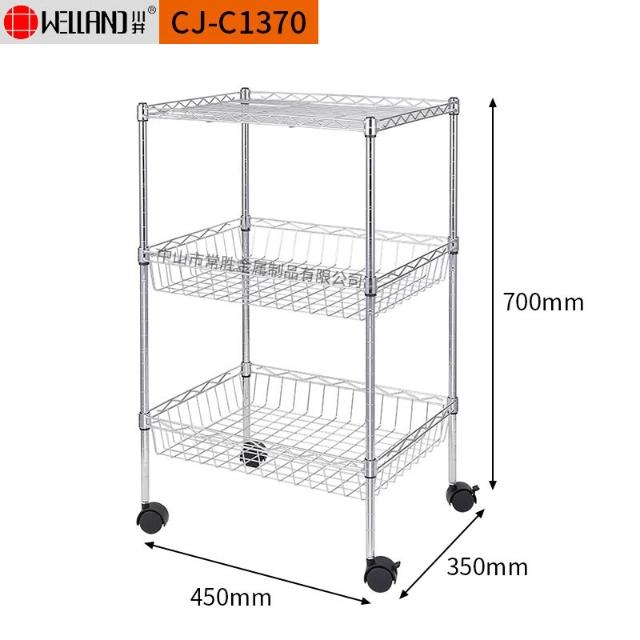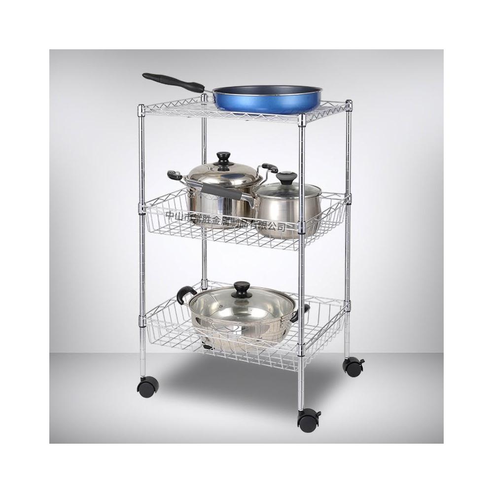 廠家批發飯廳落地收納儲物架線網鍍鉻三層廚房架網籃置物架