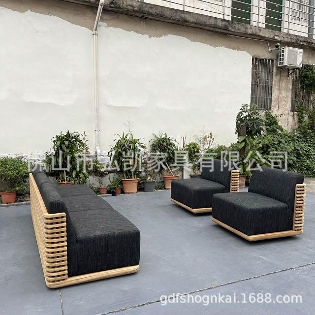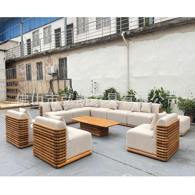 豪華柚木框架庭院戶外傢俱花園沙發套裝酒店庭院戶外沙發柚木沙發