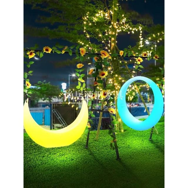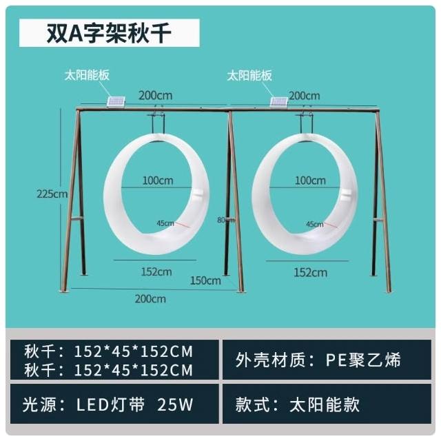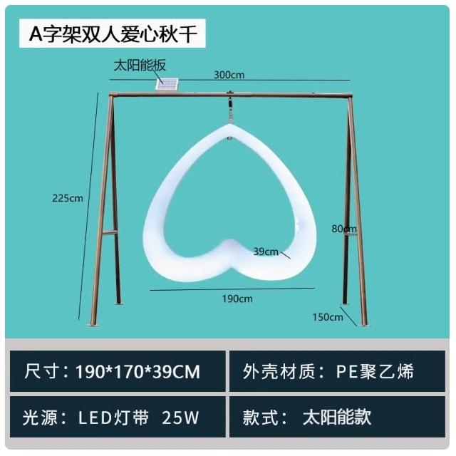 網紅發光秋千戶外庭院太陽能月亮吊搖椅大人兒童雙人組合愛心秋千