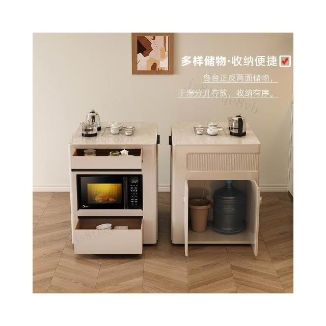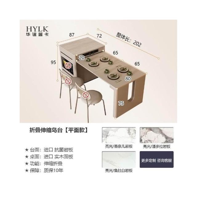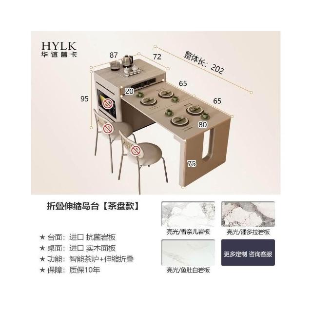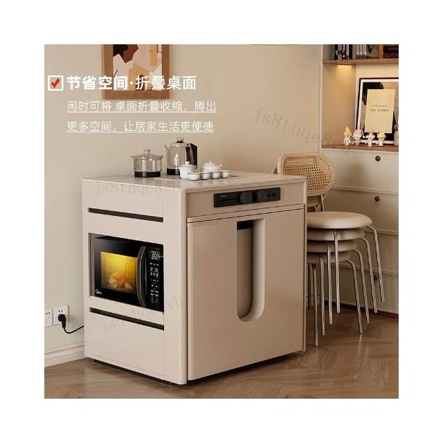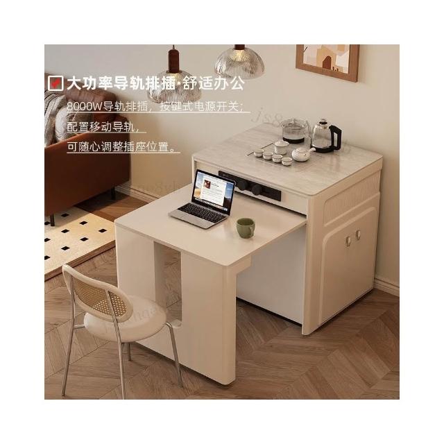 奶油風島臺一體 餐桌椅組閤 家用中島臺 泡茶折疊伸縮餐桌