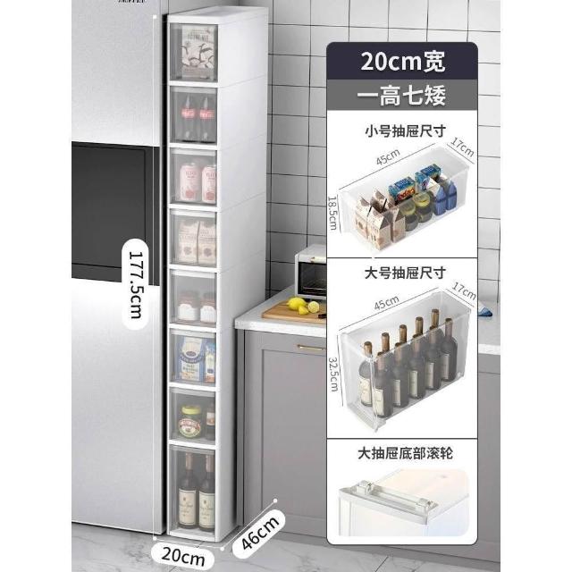 18/20cm夾縫收納櫃 廚房收納櫃 細縫 收納櫃 隙縫櫃 邊櫃 收納櫃附輪 邊櫃 收納櫃 可移動置物櫃 多功能收納櫃