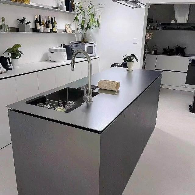 不銹鋼實心臺面304廚房防刮花島臺櫥櫃灶台桌板水槽一體成型定制