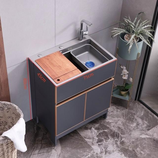 不銹鋼水槽櫃納米防汙多功能一體洗碗池廚房洗衣櫃小戶型浴室櫃