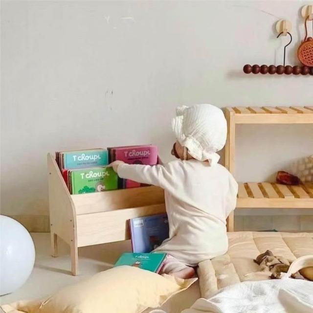 實木兒童書架 兒童書櫃 寶寶書架 落地木製書架 幼兒園書櫃 書報架 繪本展示架