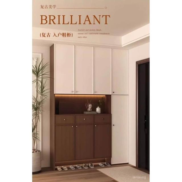 進門入戶中古風鞋櫃一體玄關收納櫃家用門口複古實木靠墻儲物櫃玄關櫃