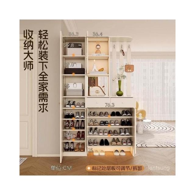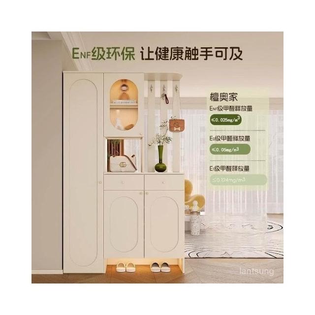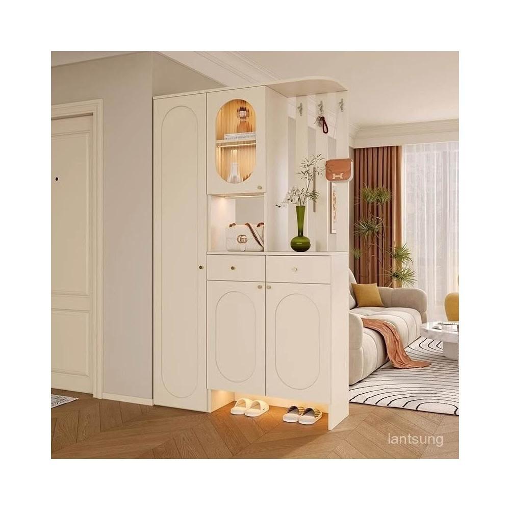 法式奶油風玄關櫃鞋櫃一體入門隔斷屏風櫃客廳收納儲物櫃原木定製收納櫃