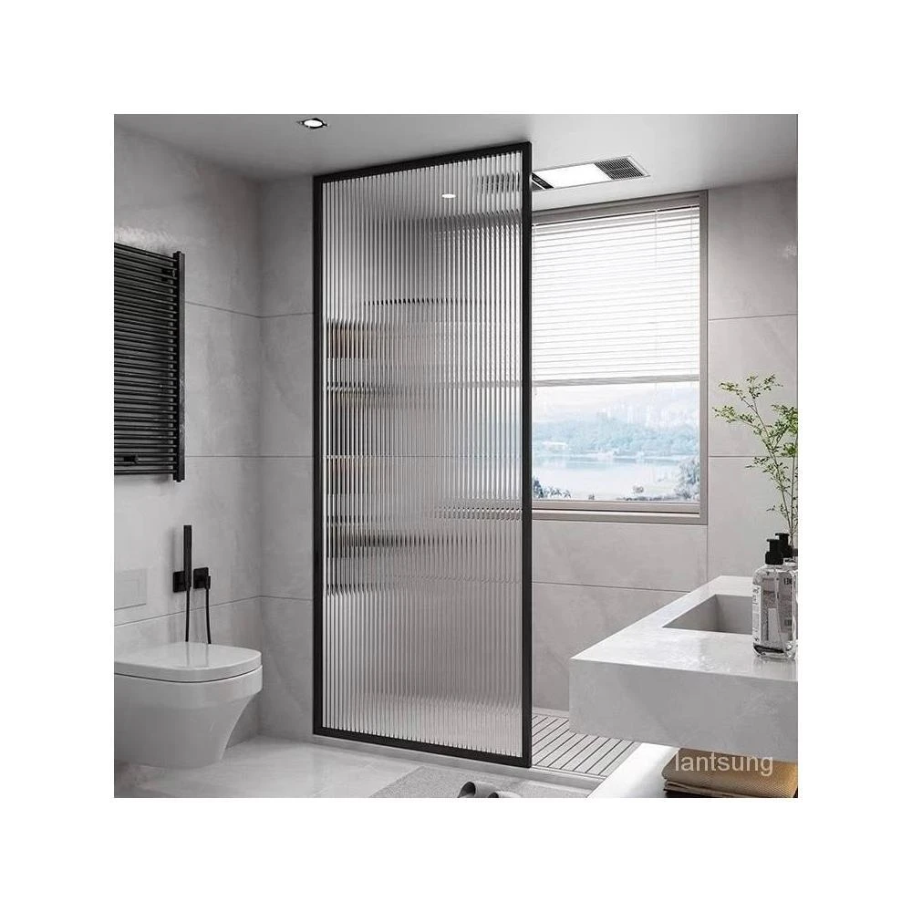 輕奢極窄鐵藝不銹鋼長虹玻璃隔斷衛生間幹濕分離浴室隔斷屏風浴屏浴室玻璃門 洗漱臺衛生間屏風裝飾 長虹玻璃