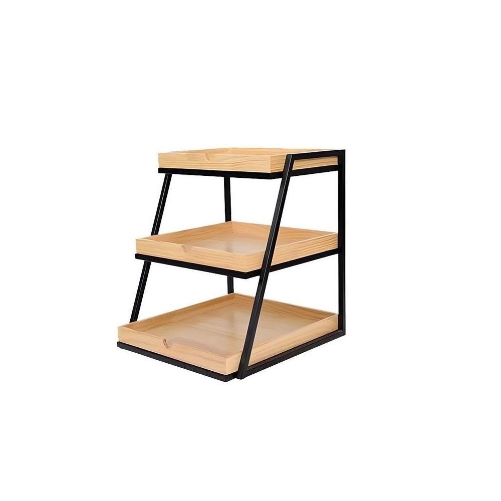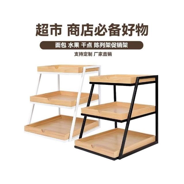 三層木盤鐵藝麵包點心雜物陳列架商場家用組閤超市櫥窗展示架