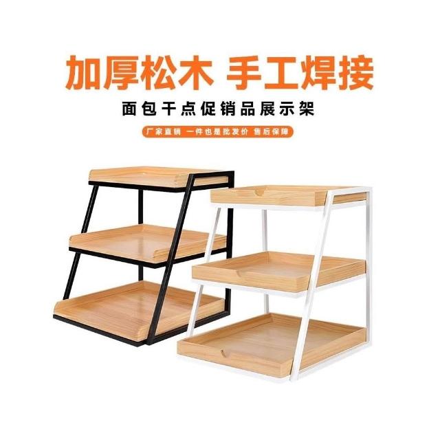 三層木盤鐵藝麵包點心雜物陳列架商場家用組閤超市櫥窗展示架