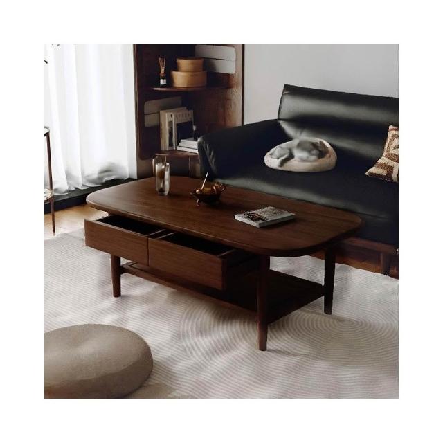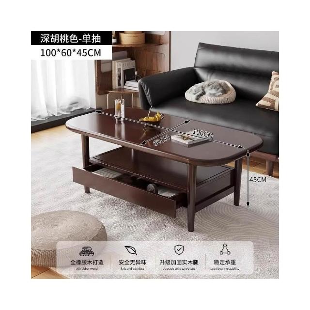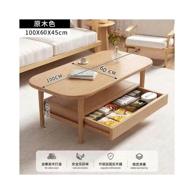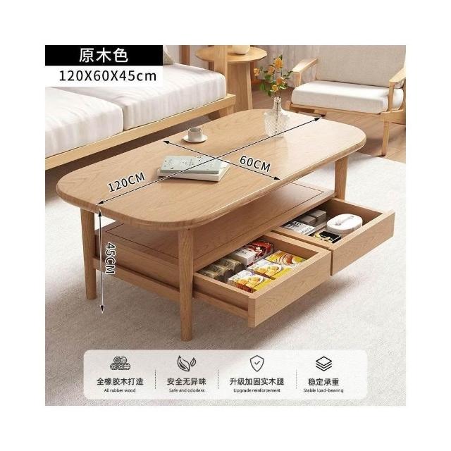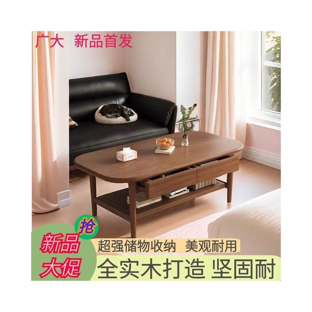 北歐實木茶几 收納矮桌 客廳家用茶臺 帶抽屜雙層茶几桌