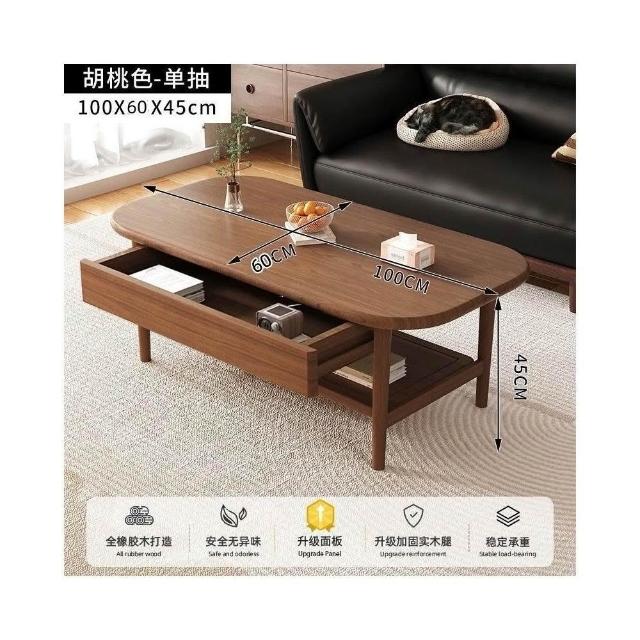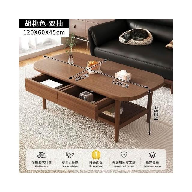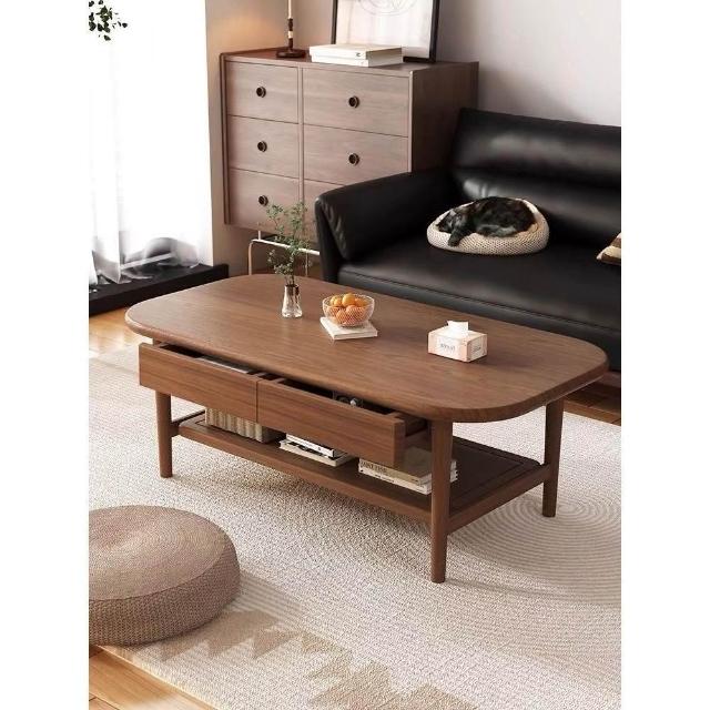 北歐實木茶几 收納矮桌 客廳家用茶臺 帶抽屜雙層茶几桌