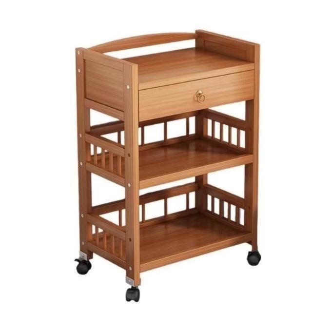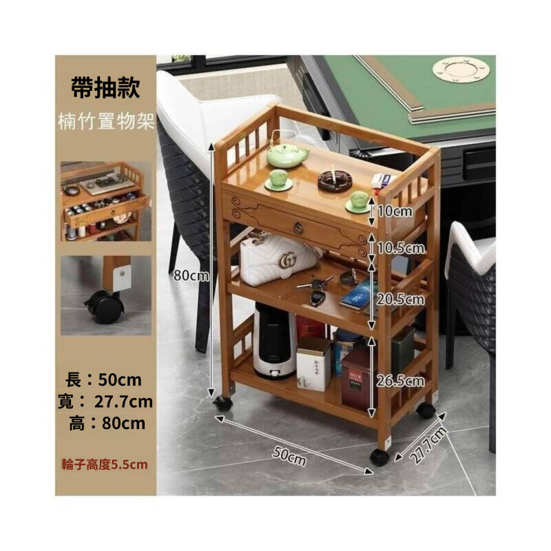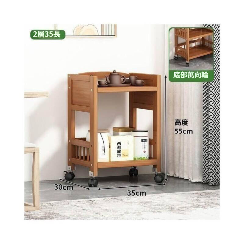 家用可移動置物架 小推車客廳 簡易實木茶收納架 沙發邊幾零食架子