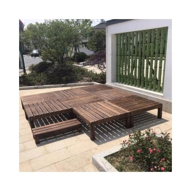 露天庭院露台 榻榻米休閒景觀平台 可移動 室外木板戶外碳化實木地板 防腐木地板 防水防腐木休閒平台