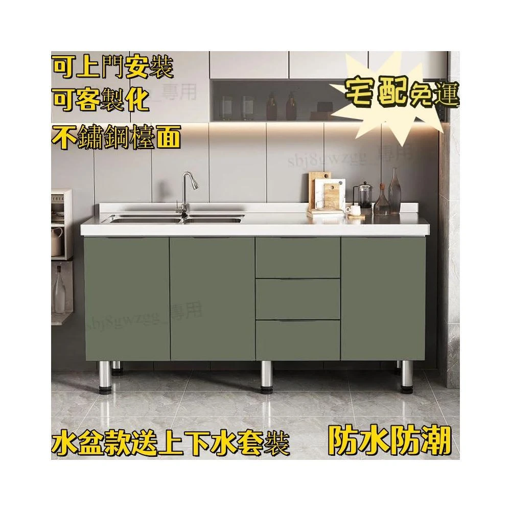 簡易櫥櫃 不銹鋼櫥櫃 家用廚房櫃 出租房櫥櫃灶台櫃 簡易組裝經濟型 小戶型廚房收納柜 不鏽鋼水槽櫥櫃 可客制化櫥櫃