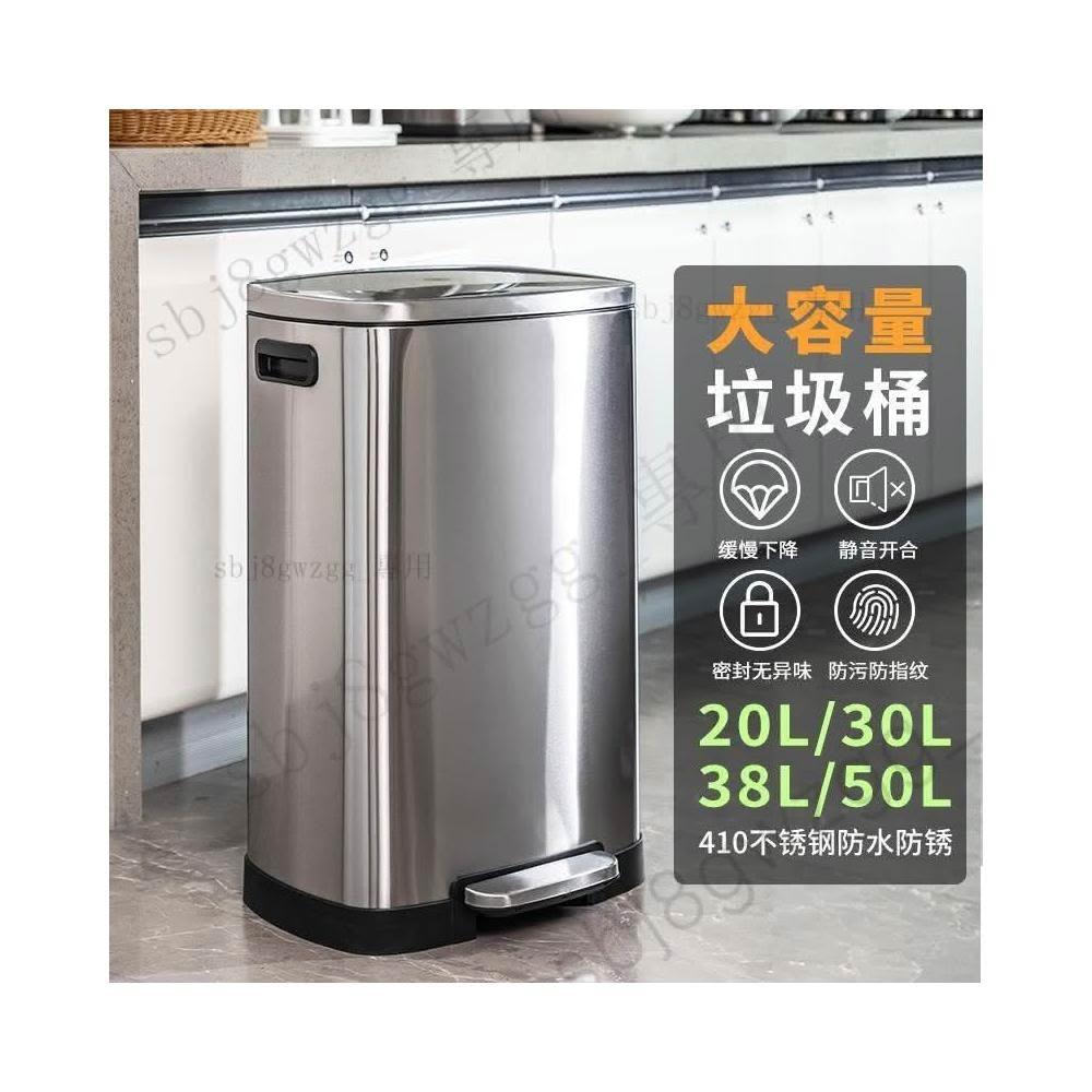 腳踏式大號不銹鋼垃圾桶大容量廚房傢用30L酒店公共大號50L防水帶蓋桶 夾縫垃圾桶