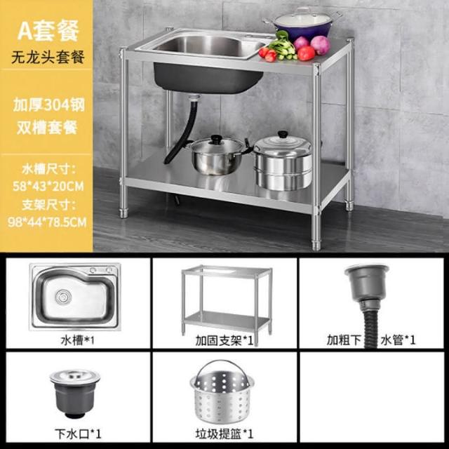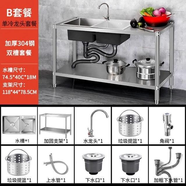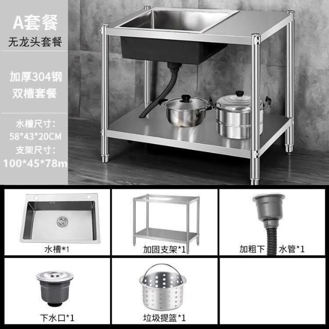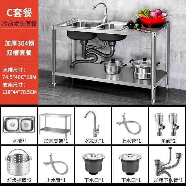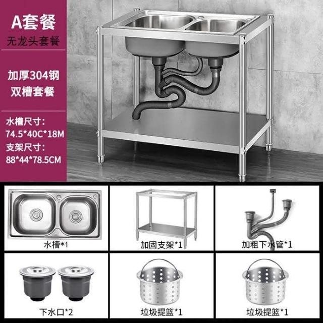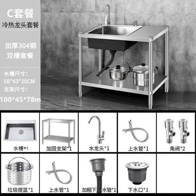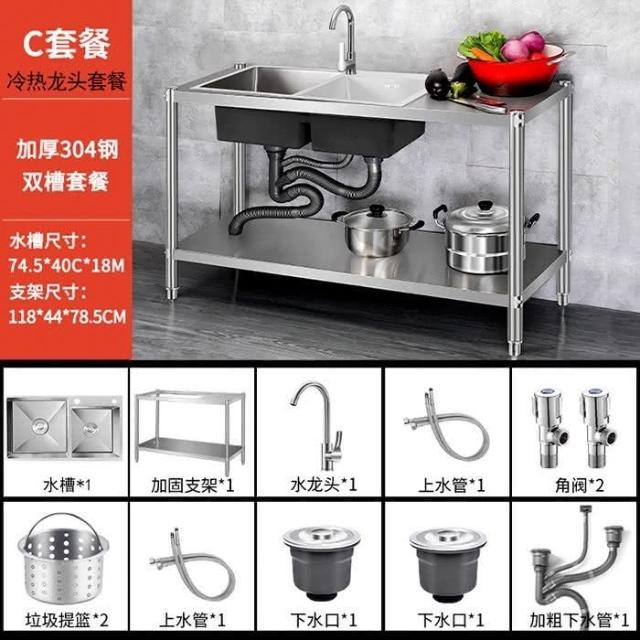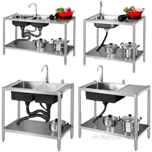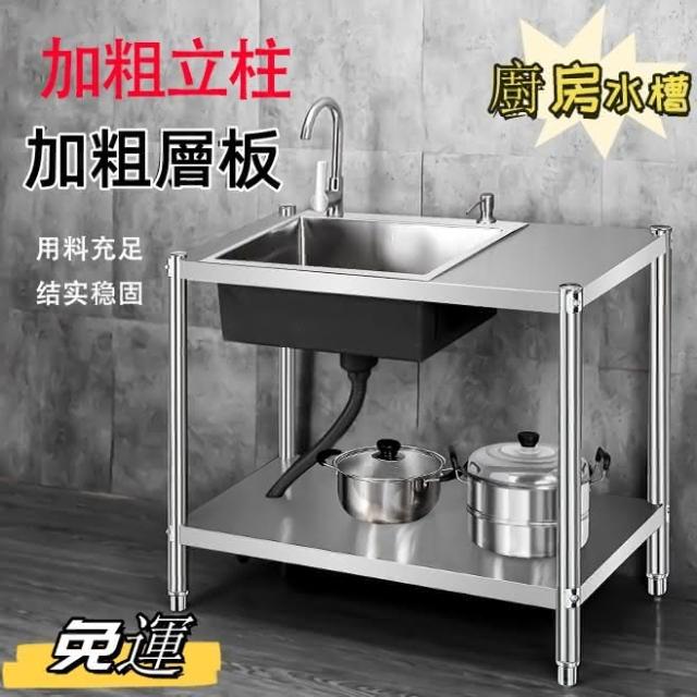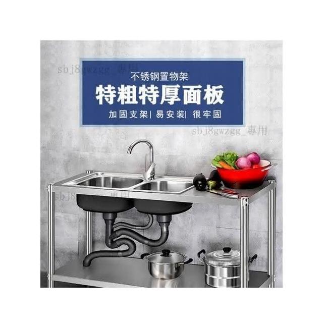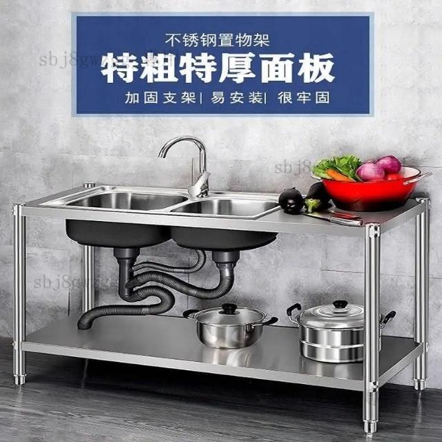 免運 不銹鋼水槽 水槽 洗手臺 洗碗槽洗手盆單雙槽水池櫃304不銹鋼水槽大單槽臺麵一體櫃帶支架廚房洗菜盆雙槽手工洗碗槽