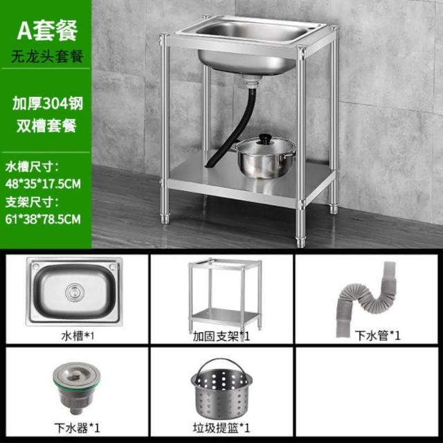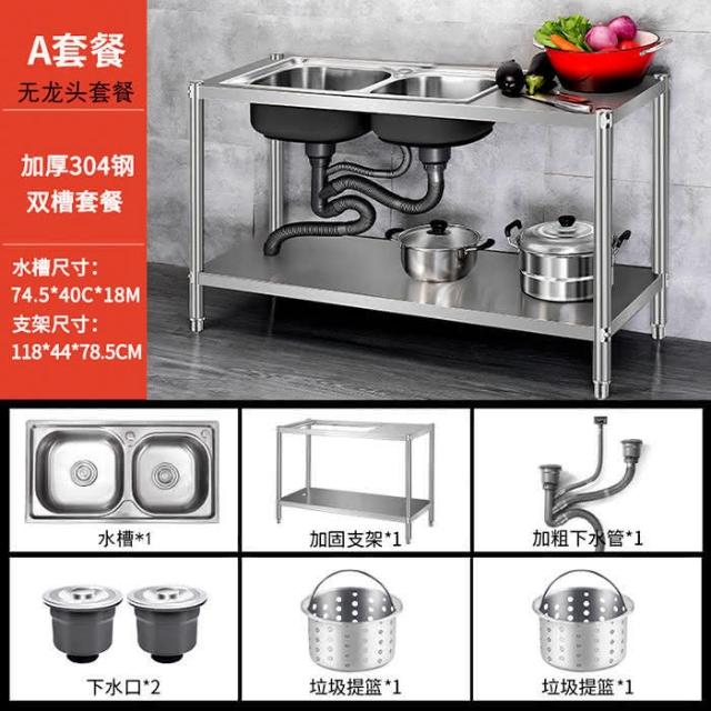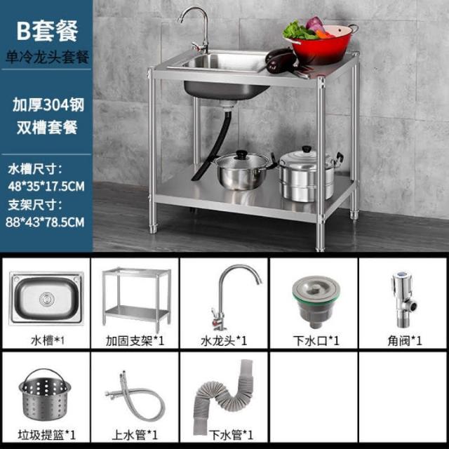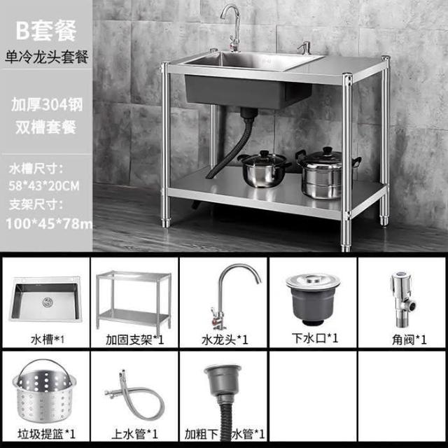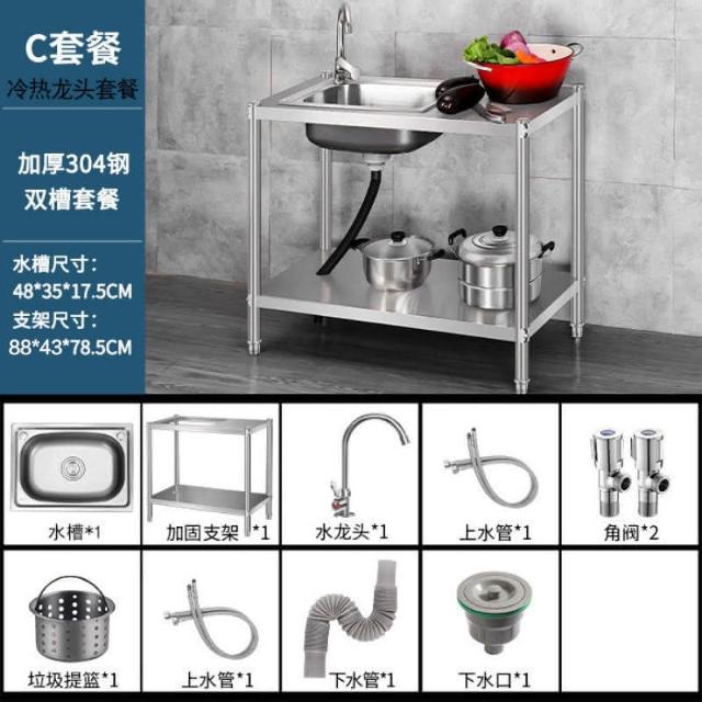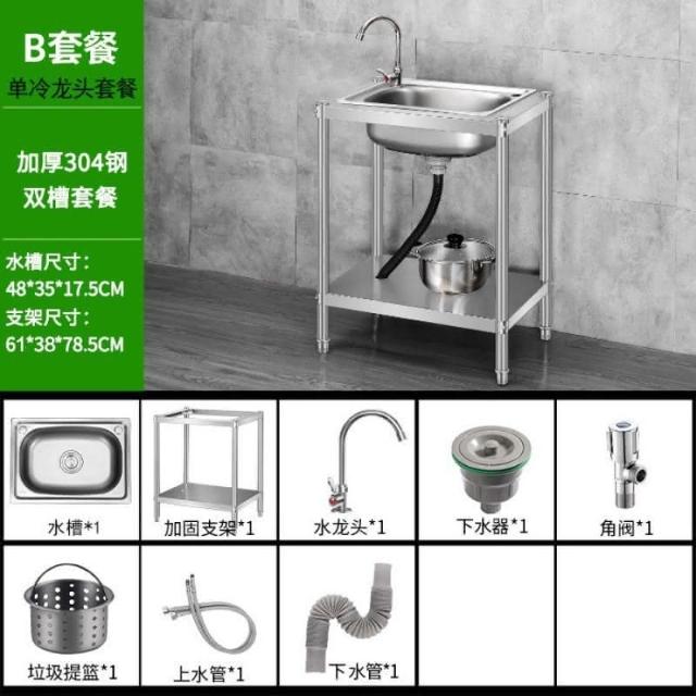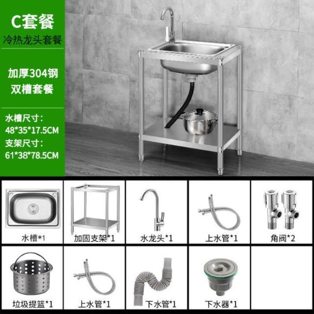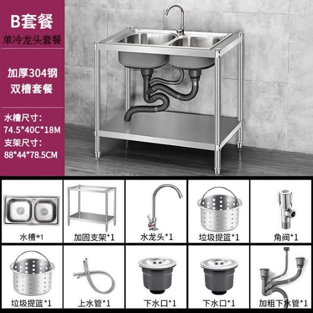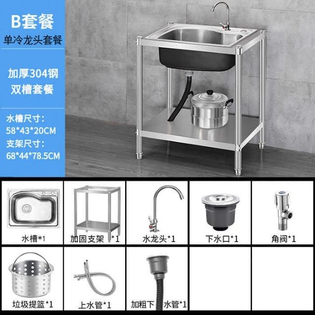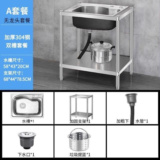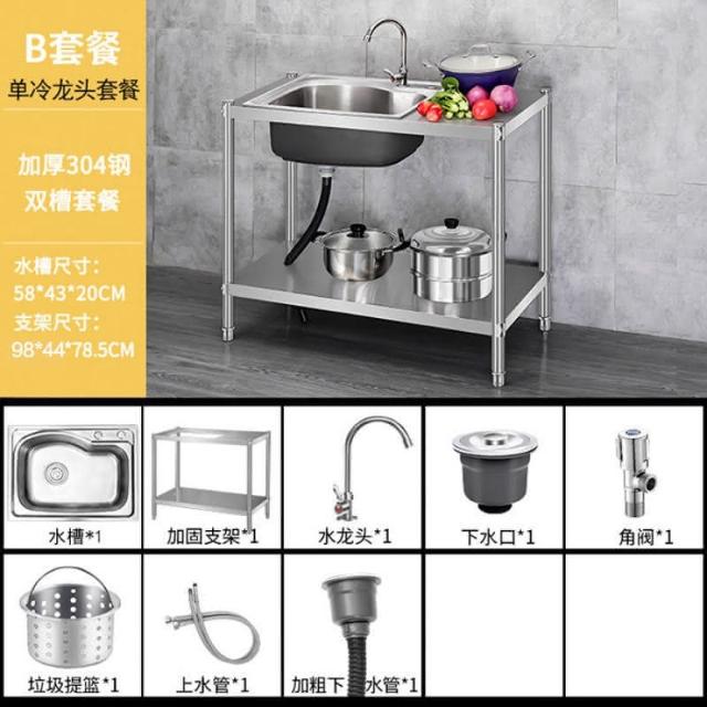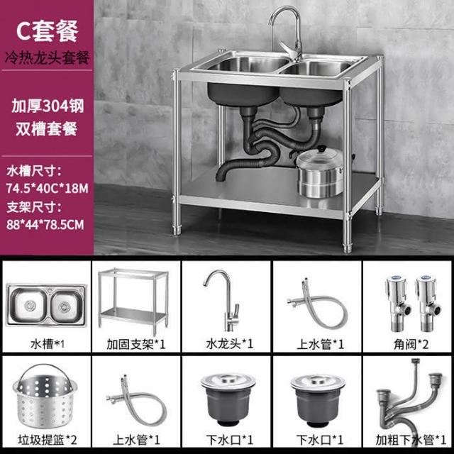 免運 不銹鋼水槽 水槽 洗手臺 洗碗槽洗手盆單雙槽水池櫃304不銹鋼水槽大單槽臺麵一體櫃帶支架廚房洗菜盆雙槽手工洗碗槽