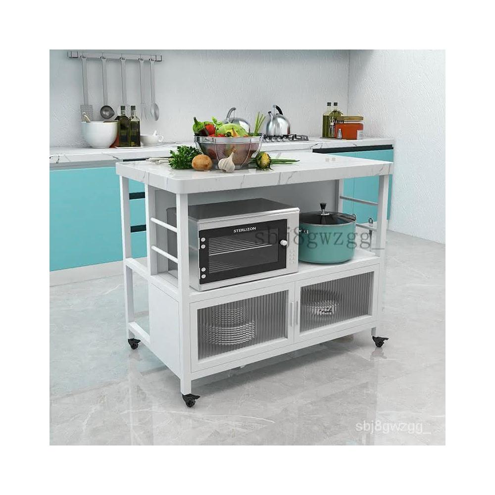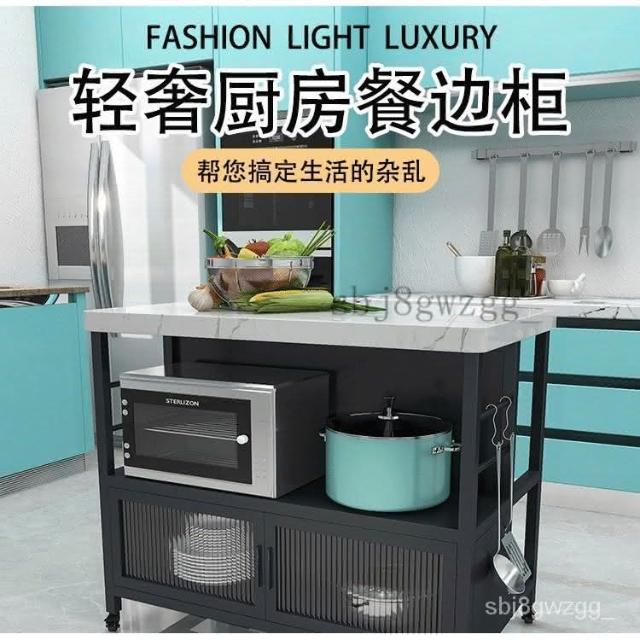 廚房置物架切菜桌微波爐烤箱架中島料理臺餐邊櫃碗盤收納櫃可移動