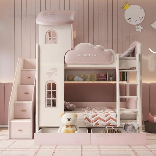 可開發票 兒童高低床女孩雙層床子母床城堡公主床多功能組合小戶型上下床