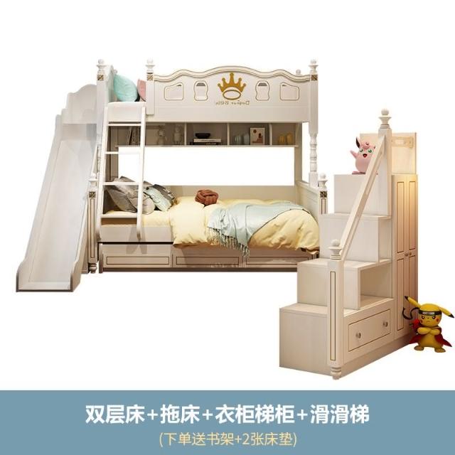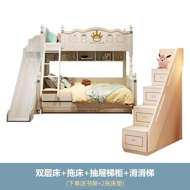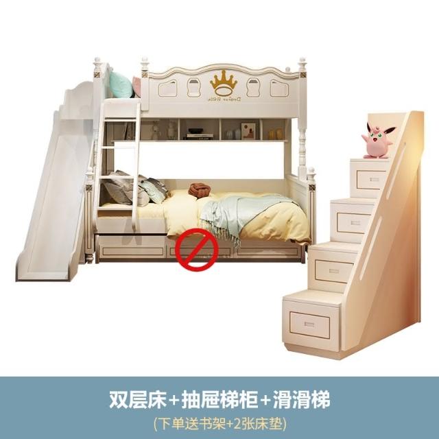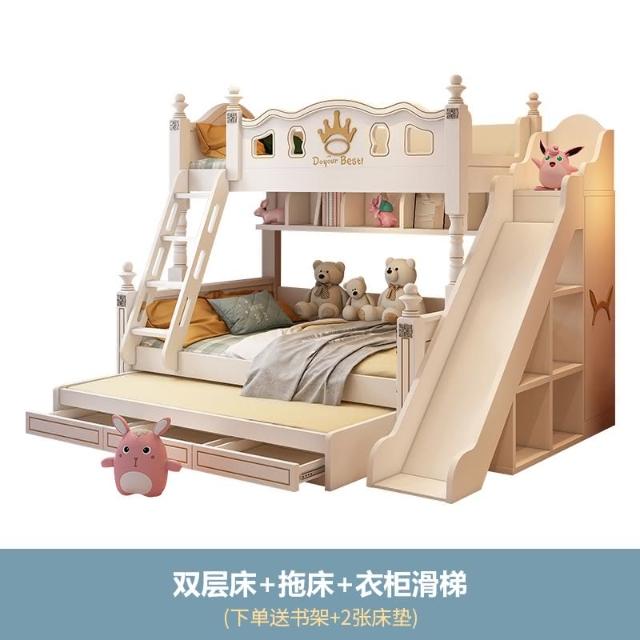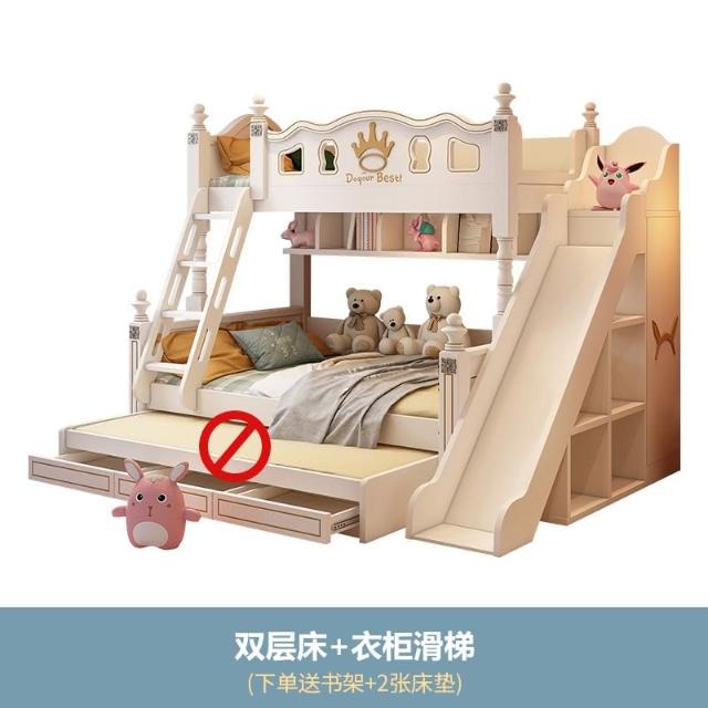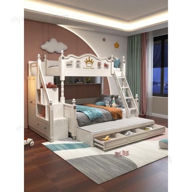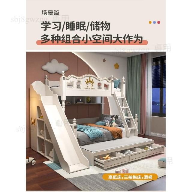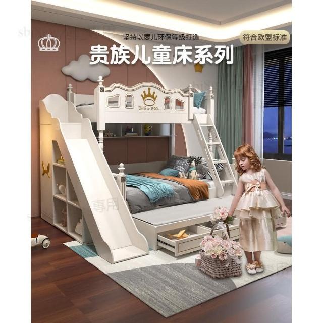 可開發票 兒童床上下床雙層床女孩高低床兩層上下鋪實木床滑梯床美式子母床