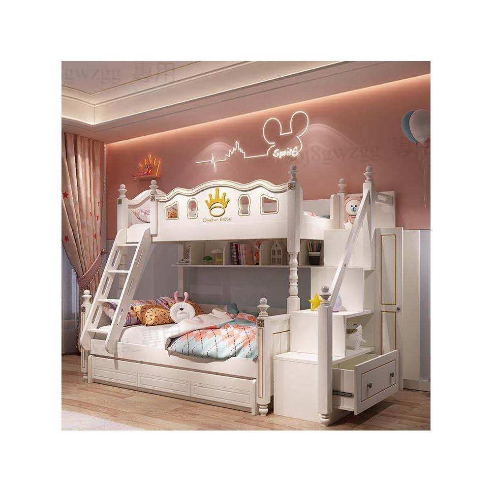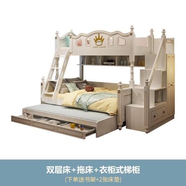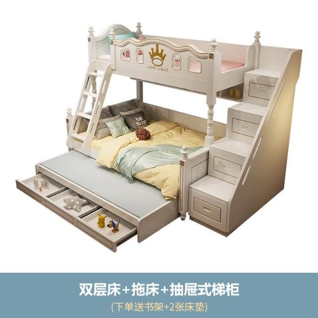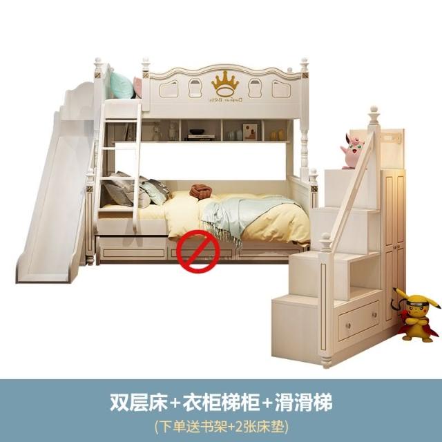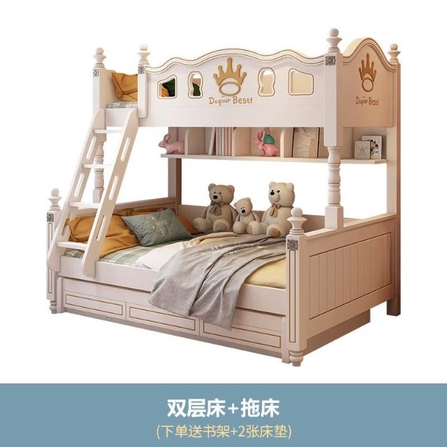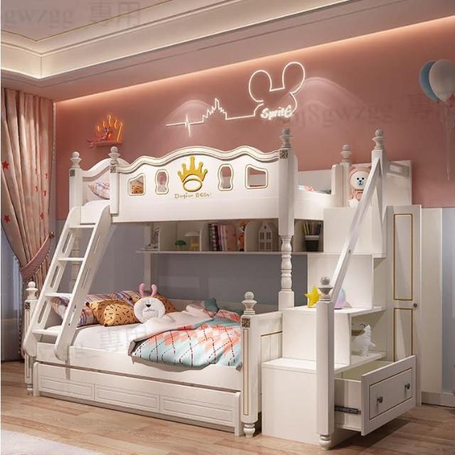 可開發票 兒童床上下床雙層床女孩高低床兩層上下鋪實木床滑梯床美式子母床