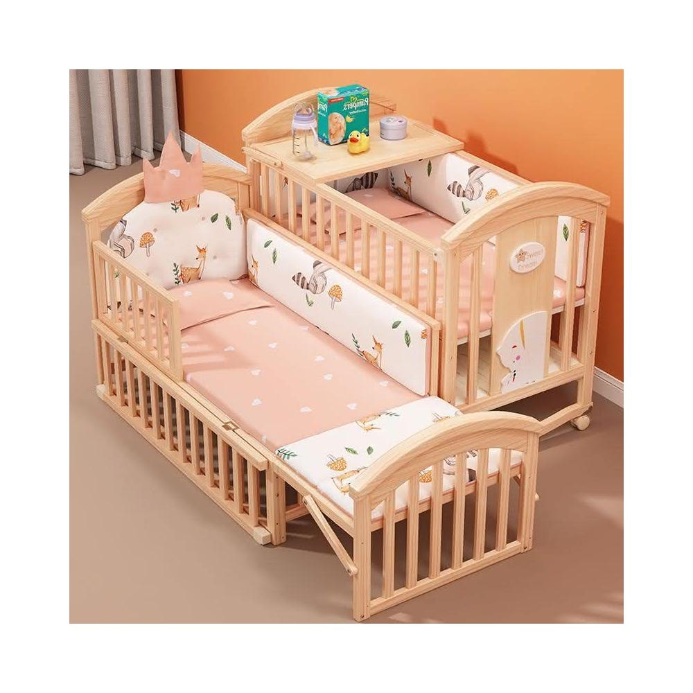可開發票 實木搖床 書桌置物架 寶寶baby搖籃多功能兒童新生兒可移動拚接大床 實木床 多功能嬰兒床 嬰兒床