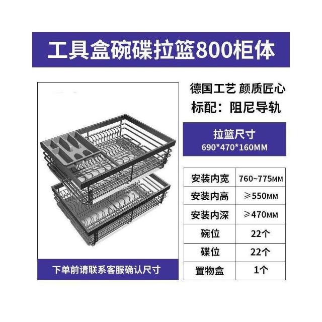 拉籃廚房櫥櫃雙層抽屜式開門304不銹鋼內碗碟盤收納置物架改造藍