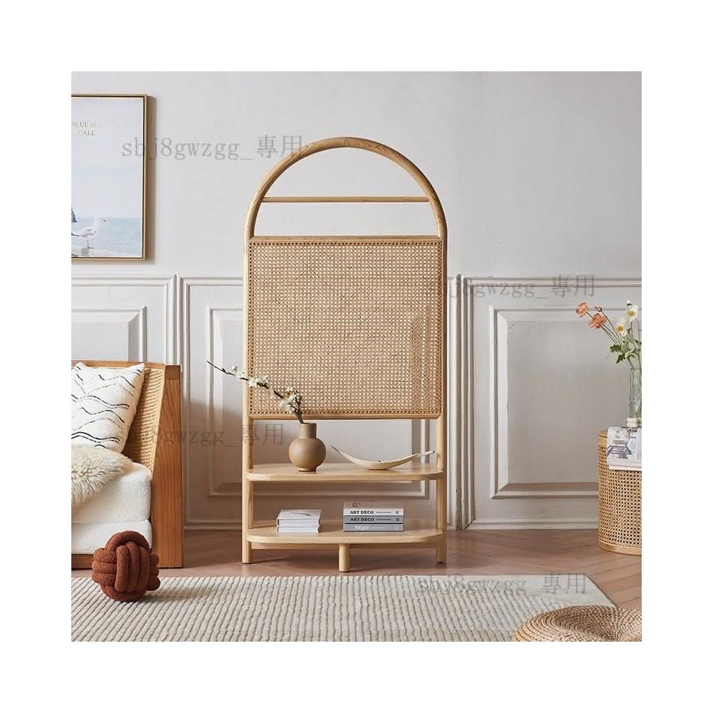 藤編 折屏 隔斷玄 田園草編屏風 屏風隔斷 隔間櫃折疊隔斷北歐實木座屏日式藤編屏風可移動複古玄關進門遮擋民宿